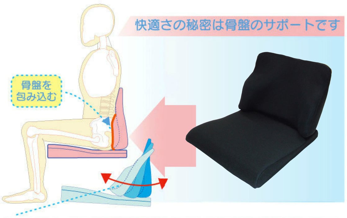背クッションは、骨盤を包み込む形状で、安定感が抜群です!