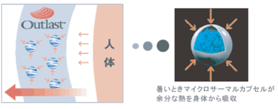 このカプセルが熱を吸収したり放出することで、理想の温度帯にコントロールしてくれます。